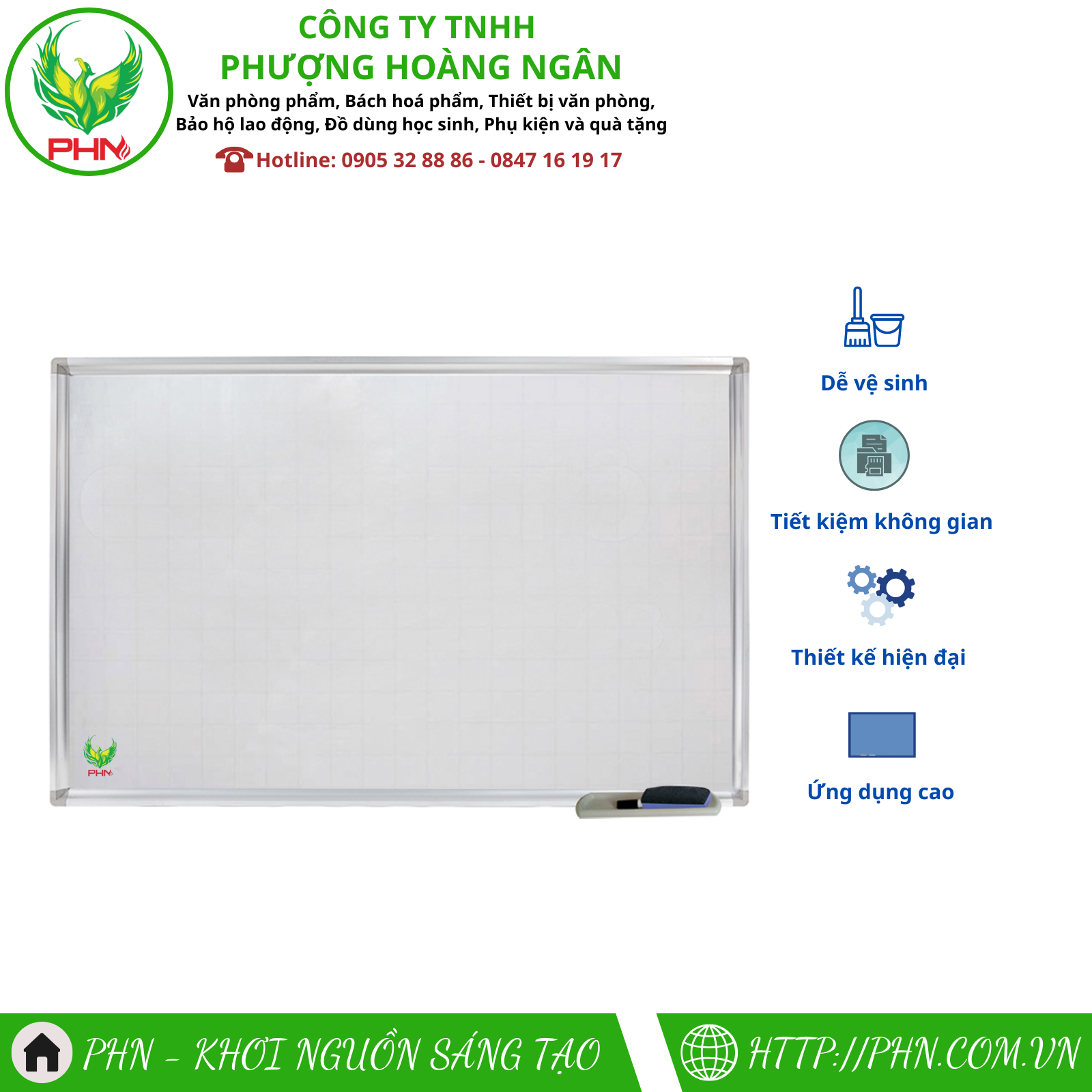 Bảng từ trắng là giải pháp tối ưu cho giảng dạy, văn phòng, họp nhóm và ghi chú sáng tạo. Sản phẩm được thiết kế hiện đại với bề mặt sáng bóng, dễ viết – dễ xóa và độ bền vượt trội, phù hợp cho mọi không gian từ lớp học, công ty đến gia đình.