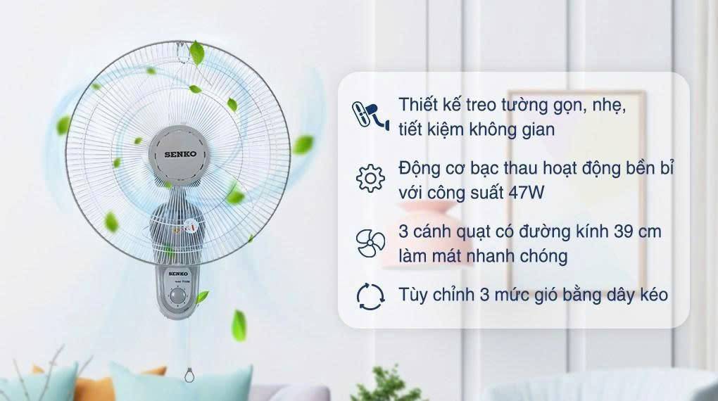 Quạt treo tường Senko T1680 / TC1680 là một trong những mẫu quạt bán chạy của SENKO nhờ khả năng làm mát mạnh mẽ, vận hành ổn định và mức giá cực kỳ hợp lý. Với chế độ bảo hành 24 tháng, sản phẩm mang lại sự an tâm tuyệt đối cho người dùng khi lựa chọn sử dụng trong gia đình, cửa hàng hoặc văn phòng.