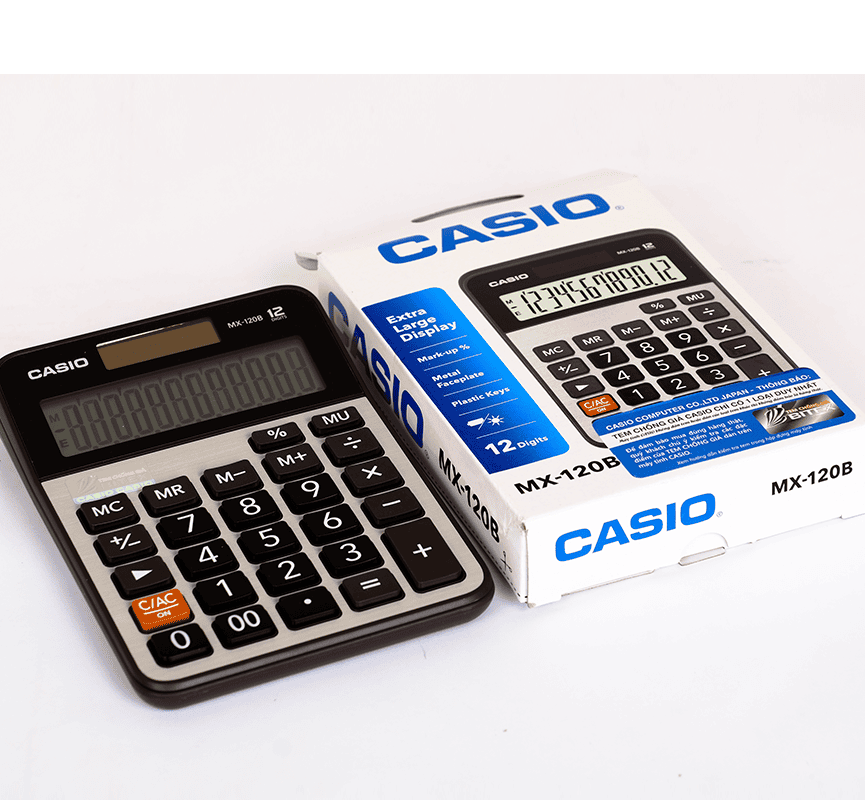 Máy tính Casio MX-120B là dòng máy tính để bàn 12 số của thương hiệu Casio (Nhật Bản) – nổi tiếng toàn cầu với chất lượng bền bỉ và độ chính xác cao.